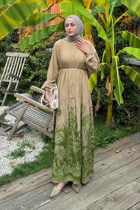 Lamelif Bel Tünel Detaylı Elbise Bej
