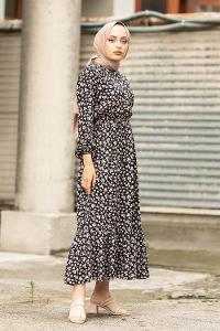 Modalamelif Papatya Desenli Elbise Siyah Gül