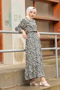 Lamelif Taş Detaylı Tesettür Elbise Siyah