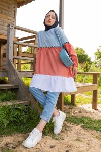 Modalamelif Parça Renklli Tunik Bebe Mavisi