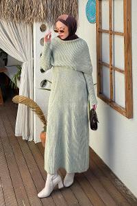Lamelif Pelerin Yaka Triko Tesettür Elbise Yeşil