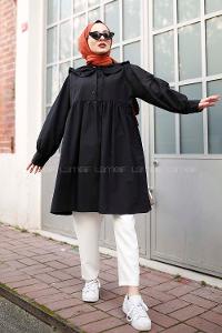 Lamelif Omuz Vatka Detaylı Tesettür Gömlek Siyah