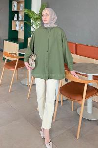 Lamelif Omuz Vatka Detaylı Tesettür Gömlek Yağ Yeşili
