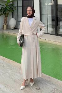 Lamelif Bağlama Detaylı Etekli Takım Bej