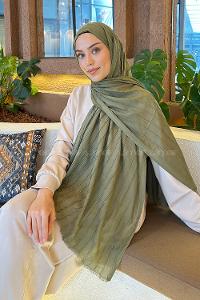 Lamelif Bulut Desen Müslin Şal Asker Yeşili