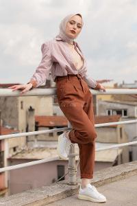 Lamelif Kol Tünel İp Detaylı Gömlek Acı Kahve