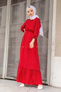 Modalamelif Puantiye Desenli Elbise Kırmzı