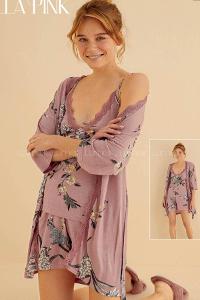 Lamelif Puantiyeli 3 lü Gecelik Takımı Kadın Pudra
