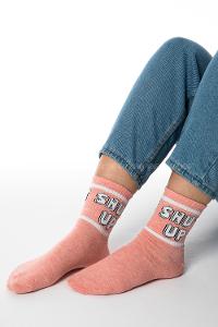 lamelif pudra renk, shut up baskılı, soket çorap.