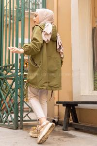 Modalamelif Reglan Kol Detaylı Kapşonlu Kaban Haki