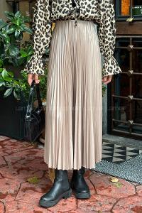 Lamelif Düğme Detaylı Pileli Etek Bej