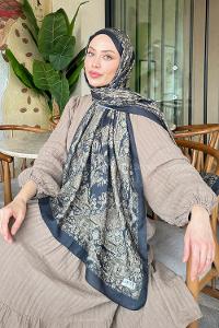 Lamelif Retro Desen Soft Şal Siyah Beyaz