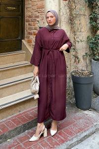 Lamelif Düğme Kapama Tesettür Elbise Bordo