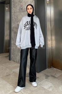 Lamelif Kapüşonlu Salaş Sweatshirt Gri