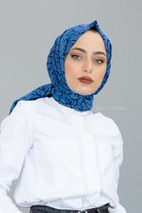Lamelif Batik Desen Soft Şal Saks Mavisi
