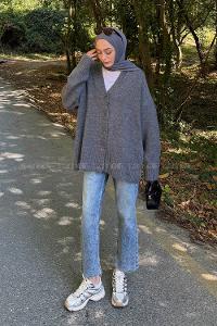 Lamelif Salaş Dokulu Basic Hırka Antrasit