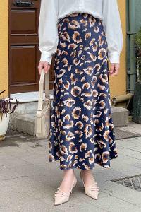 Lamelif Saten Pamuklu Leopar Etek Lacivert