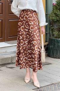Lamelif Saten Pamuklu Leopar Etek Toprak Rengi