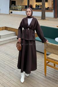 Lamelif Bağlamalı Ceketli Takım Acı Kahve