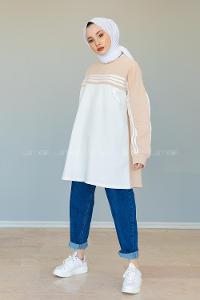 Lamelif Bisiklet Yaka Omuz Fırfırlı Tunik Bej