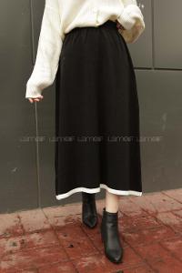 Lamelif Şerit Geçişli Triko Etek Siyah