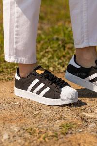 yanı şeritli, siyaha beyaz spor ayakkabı.