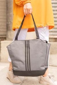 Lamelif Şeritli Shopper Kadın Omuz Çantası Gri