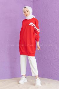 Modalamelif Şeritli Sweatshirt Kırmızı