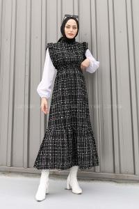 Lamelif Sıfır Kol Detaylı Tesettür Elbise Siyah