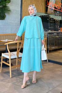 Lamelif Simona Zincir Detaylı Etekli Takım Su Yeşili
