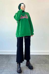 Lamelif Simu Liu Barbie Baskılı İki İplik Sweatshirt Yeşil