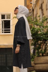 Lamelif Nakışlı Çizgili Sweatshirt Siyah
