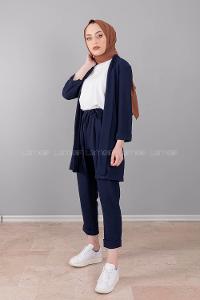 Lamelif Üçlü Tesettür Takım Lacivert