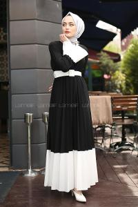 Modalamelif Siyah Çingene Model Beyaz Geçişli Kemerli Elbise