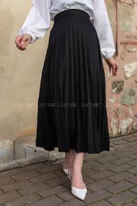 Lamelif Siyah Mira Kumaş Pliseli Etek