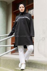 Lamelif Kapüşonlu Salaş Sweatshirt Siyah