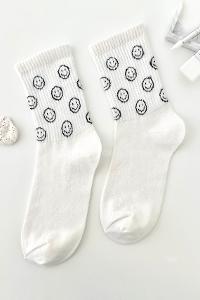 Lamelif Kalp Nakış İşlemeli Beyaz Tenis Çorap