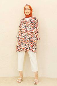 Lamelif Omuz Vatka Detaylı Tesettür Gömlek Acı Kahve