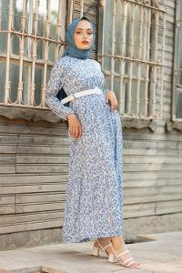 Lamelif Elica Tesettür Elbise Saks Mavisi