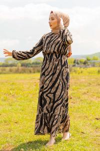 Modalamelif Soyut Desenli Elbise Vizonrengi