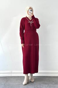 Lamelif Taş Detaylı Etekli İkili Takım Bordo