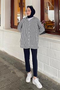 Lamelif Tek Cep Detaylı Çizgili Gömlek