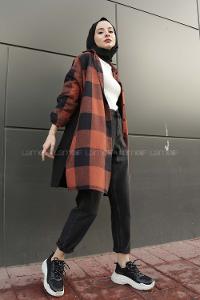 Modalamelif Tek Cep Detaylı Ekose Gömlek Kiremit