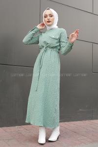 Lamelif Kanguru Cepli Tesettür Elbise Mint Yeşili