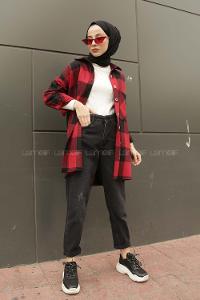 Modalamelif Tek Cepli Uzun Ekose Gömlek Kırmızı