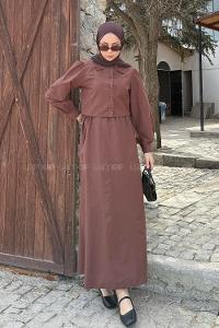 Lamelif Cep Detaylı İkili Etek Tesettür Takım Acı Kahve