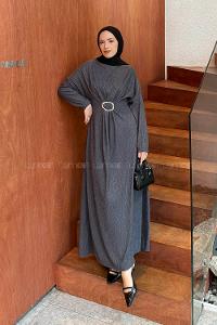 Lamelif Toka Detaylı Tesettür Elbise Antrasit