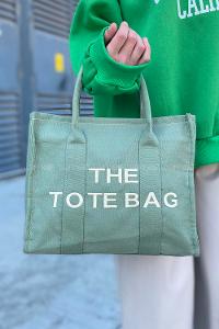 Lamelif Tote Bag Nakışlı Kanvas Kumaş Kadın Çanta Çağla Yeşili