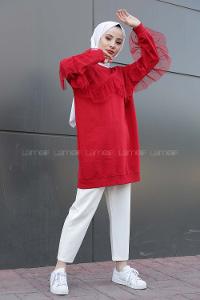 Modalamelif Tül Detaylı Tunik Kırmızı