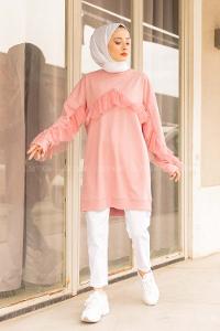 Lamelif Lopez Balon Kol Tunik Şeker Pembesi